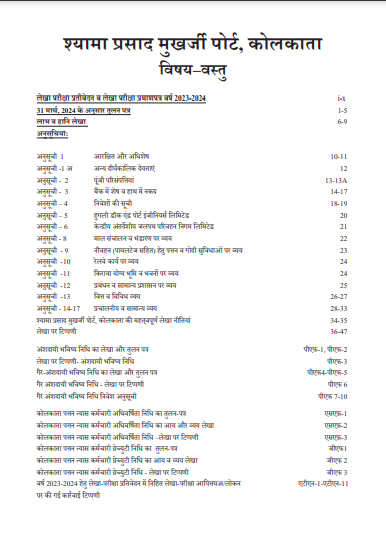 Submitted by admin on Wed, 12/18/2024 - 12:06 Language English Attachment File: Annual Accounts 2023-24.pdfStart Year: 2023End Year: 2024Report Image Upload: Select Port: Syama Prasad Mookerjee Port AuthorityArchive Date: Wednesday, December 18, 2030