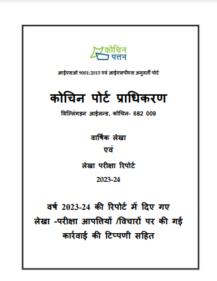 Submitted by admin on Fri, 12/06/2024 - 10:51 Language Hindi Attachment File: Annual Accounts Action Taken Notes for 2023-24 - Hindi Version.pdfStart Year: 2023End Year: 2024Report Image Upload: Select Port: Cochin Port AuthorityArchive Date: Friday, December 6, 2030