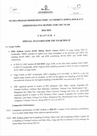 Year Date Format: 2026 if report is belongs to Year 2019-2020 then search with 2019 Select Ports - Any -Inland Waterways Authority of IndiaMinistry Of Ports,Shipping and WaterwaysTariff Authority For Major PortsVisakhapatnam Port AuthorityV.O.Chidambarnar Port AuthoritySethusamudram Corporation LimitedNew Mangalore Port AuthorityMumbai Port AuthorityDeendayal Port AuthorityCochin Port AuthorityChennai Port AuthorityJawaharlal Nehru Port AuthorityKamarajar Port LimitedMormugao Port AuthoritySyama Prasad Mookerjee Port AuthorityKandla Port Trusts 2024 - 2025 Click here to Download Report(17.33 MB) link: 2024 - 2025 Click here to Download Report(18.95 MB) link: 2024 - 2025 Click here to Download Report(6.87 MB) link: 2024 - 2025 Click here to Download Report(12.87 MB) link: 2024 - 2025 Click here to Download Report(13.62 MB) link: 2024 - 2025 Click here to Download Report(6.75 MB) link: 2023 - 2024 Click here to Download Report(17.29 MB) link: 2023 - 2024 Click here to Download Report(3.42 MB) link: 2023 - 2024 Click here to Download Report(21.37 MB) link: 2023 - 2024 Click here to Download Report(9.23 MB) link: Pages1 2 3 4 next › last »